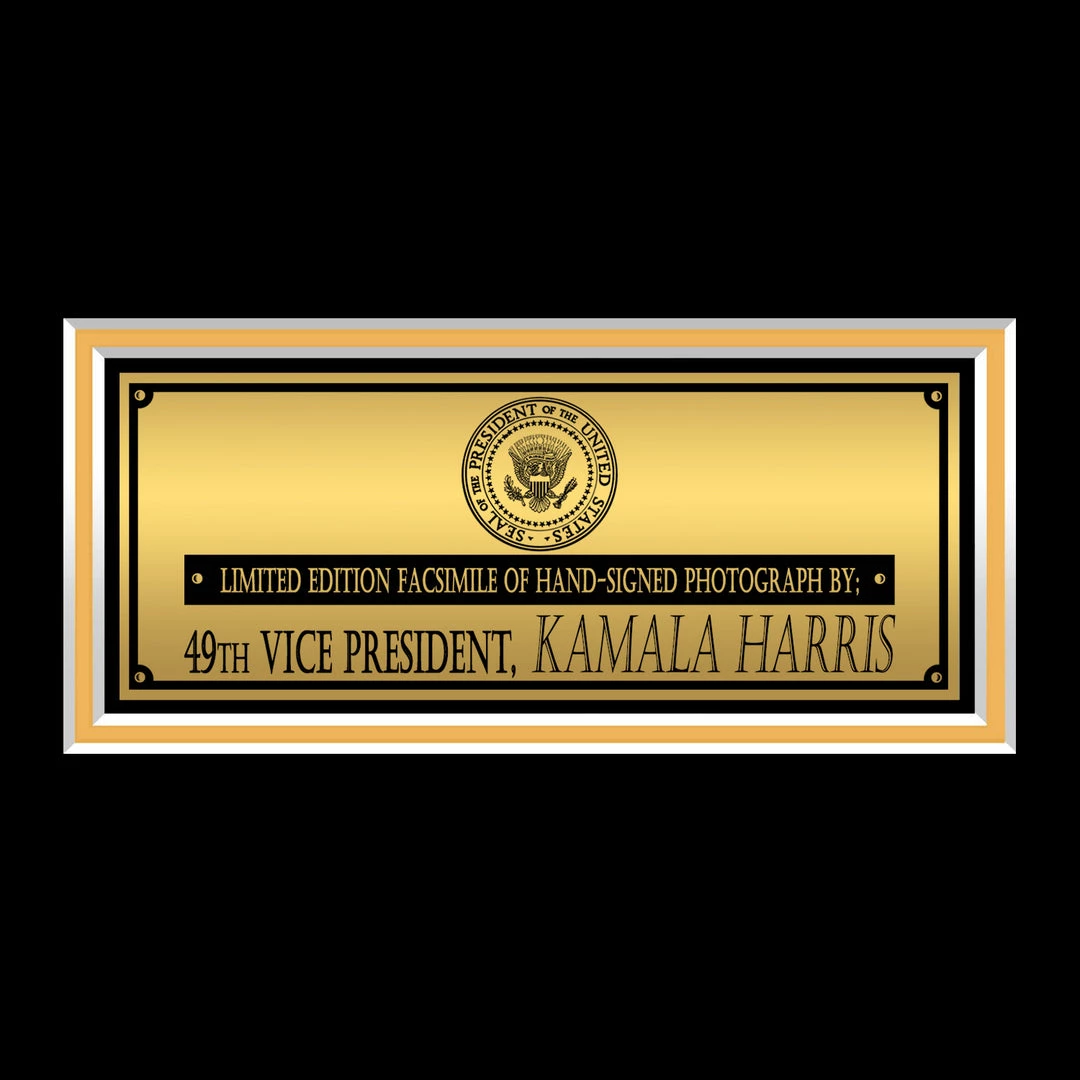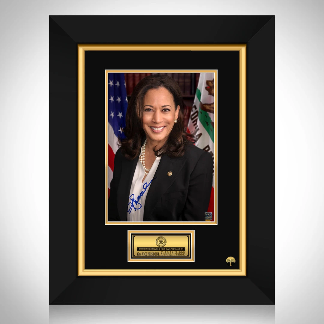 Pay homage to the 49th Vice President of The United Statesย Kamala Harrisย with this gallery-framed, officially licensed, limited edition facsimile of hand-signed promo photo, originally signed by Kamala Harrisย , of which is strictly limited to 100 units Worldwide, and has been approved and numbered accordingly.