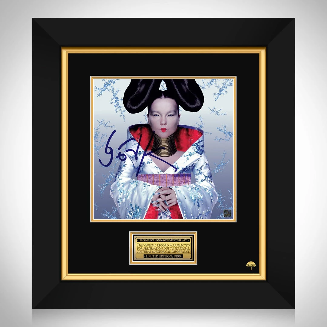 Pay homage to one of the most iconic American hip hop and rap rock group of all time, Björk , with this gallery-framed, officially licensed, limited edition facsimile of the Hand-Signed Homogenic LP Cover originally signed by Björk , of which is strictly limited to 100 units Worldwide, and has been approved and numbered accordingly.