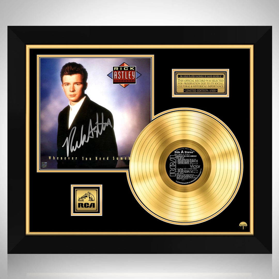 Pay homage to one of the most iconic English singer, songwriter, radio personality of all time Rick Astley , with this gallery-framed, authentic RCA Records fully licensed facsimile of the official Hand-Signed 24K Gold LP Record and LP Cover Whenever you need somebody Originally signed by Rick Astley , of which is strictly limited to 100 units Worldwide and has been approved and numbered accordingly.