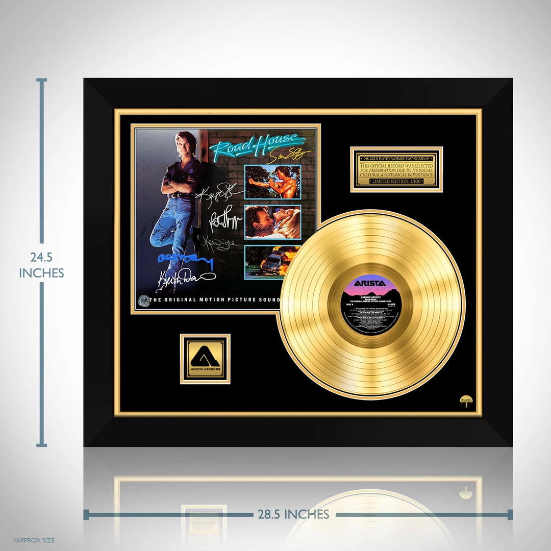 Pay homage to one of the most iconic movie of all time Road House , with this gallery-framed, authentic Arista Records fully licensed facsimile of the official Hand-Signed 24K Gold LP Record and LP Cover Original Motion Picture Soundtrack Originally signed by Patrick Swayze, Kelly Lynch, Sam Elliott, Ben Gazzara, Marshall R.Teague, Jeff Healey, Kevin Tighe & Keith David , of which is strictly limited to 100 units Worldwide and has been approved and numbered accordingly.