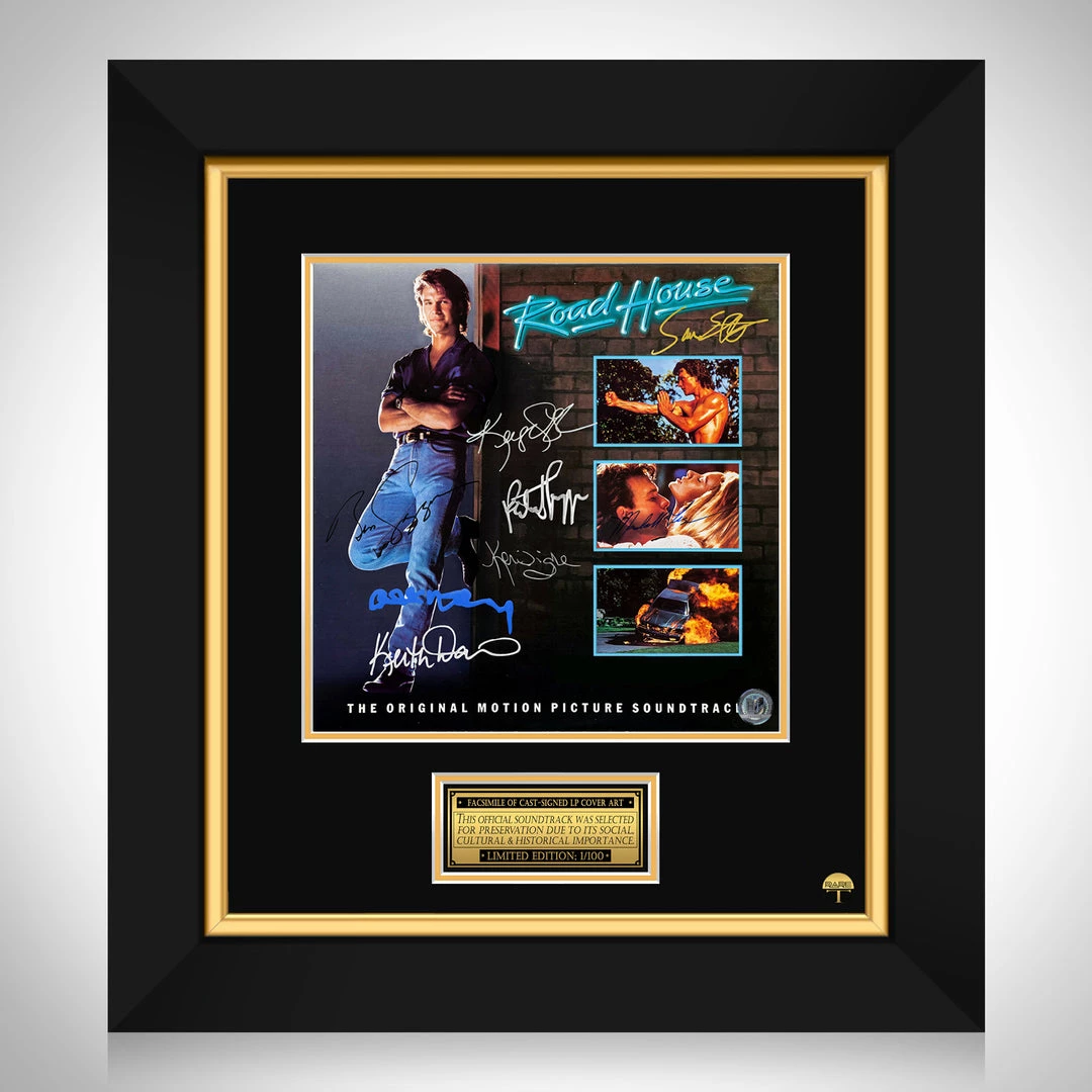 Pay homage to one of the most iconic movie of all time, Road House , with this gallery-framed, officially licensed, limited edition facsimile of the Hand-Signed Original Motion Picture Soundtrack LP Cover originally signed by Patrick Swayze, Kelly Lynch, Sam Elliott, Ben Gazzara, Marshall R.Teague, Jeff Healey, Kevin Tighe & Keith David , of which is strictly limited to 100 units Worldwide, and has been approved and numbered accordingly.