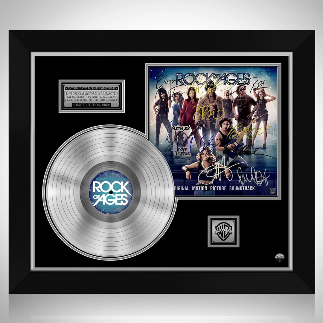 Pay homage to one of the most iconic movie of all time Rock of Ages , with this gallery-framed, authentic Warner Bros fully licensed facsimile of the official Hand-Signed Platinum Plated LP Record and LP Cover Soundtrack Originally signed by Tobey Maguire, Julianne Hough, Russell Brand, Alec Baldwin, Bryan Cranston, Catherine Zeta-Jones, Paul Giamatti, Tom Cruise, Mary J.Blige & Sebastian Bach , of which is strictly limited to 100 units Worldwide and has been approved and numbered accordingly.