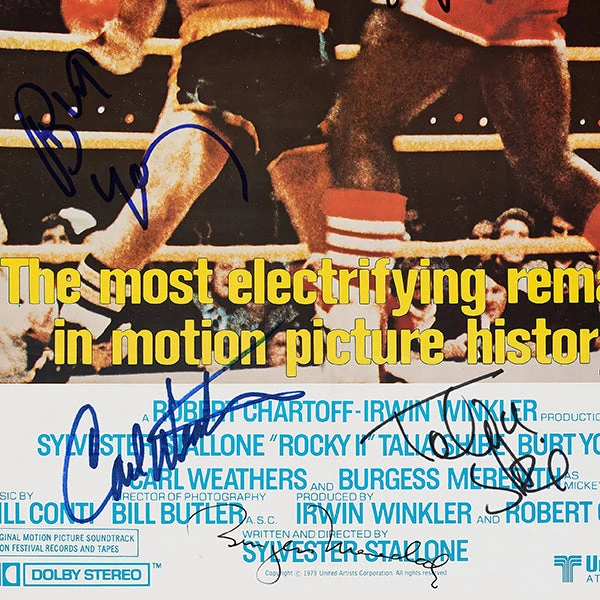 — Originally signed by Sylvester Stallone, Burt Young, Burgess Meredith, Talia Shire, Carl Weathers and Tony BurtonÂ