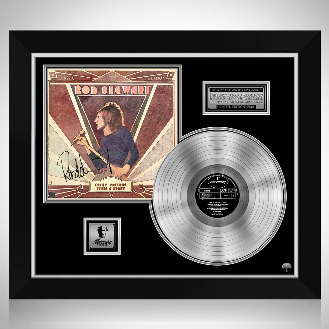 Pay homage to one of the most iconic British rock and pop singer, songwriter, record producer of all time Rod Stewart , with this gallery-framed, authentic Mercury Records fully licensed facsimile of the official Hand-Signed Platinum Plated LP Record and LP Cover Every picture tells a story Originally signed by Rod Stewart , of which is strictly limited to 100 units Worldwide and has been approved and numbered accordingly.