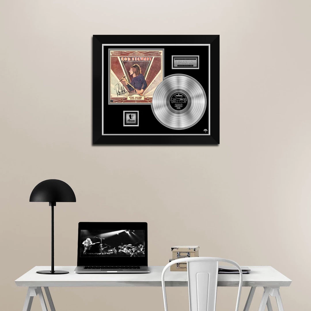 โ Collectible Rod Stewart Facsimile Hand-Signed Platinum Plated LP Custom Frame