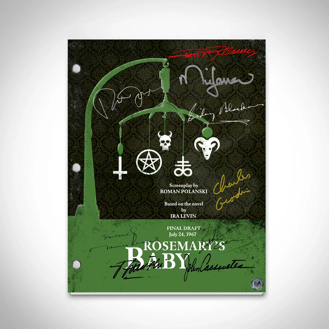 Pay homage to Rosemary’s Baby , with this Paramount Pictures fully licensed facsimile of the official signed movie script, originally signed by actors Roman Polanski, Mia Farrow, John Cassavetes, Ruth Gordon, Robert Evans, Sidney Blackmer, Maurice Evans, Ralph Bellamy & Charles Grodin , of which is strictly limited to 100 units Worldwide and has been approved and numbered accordingly.