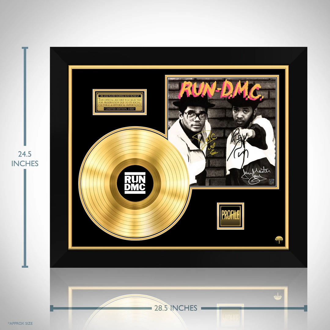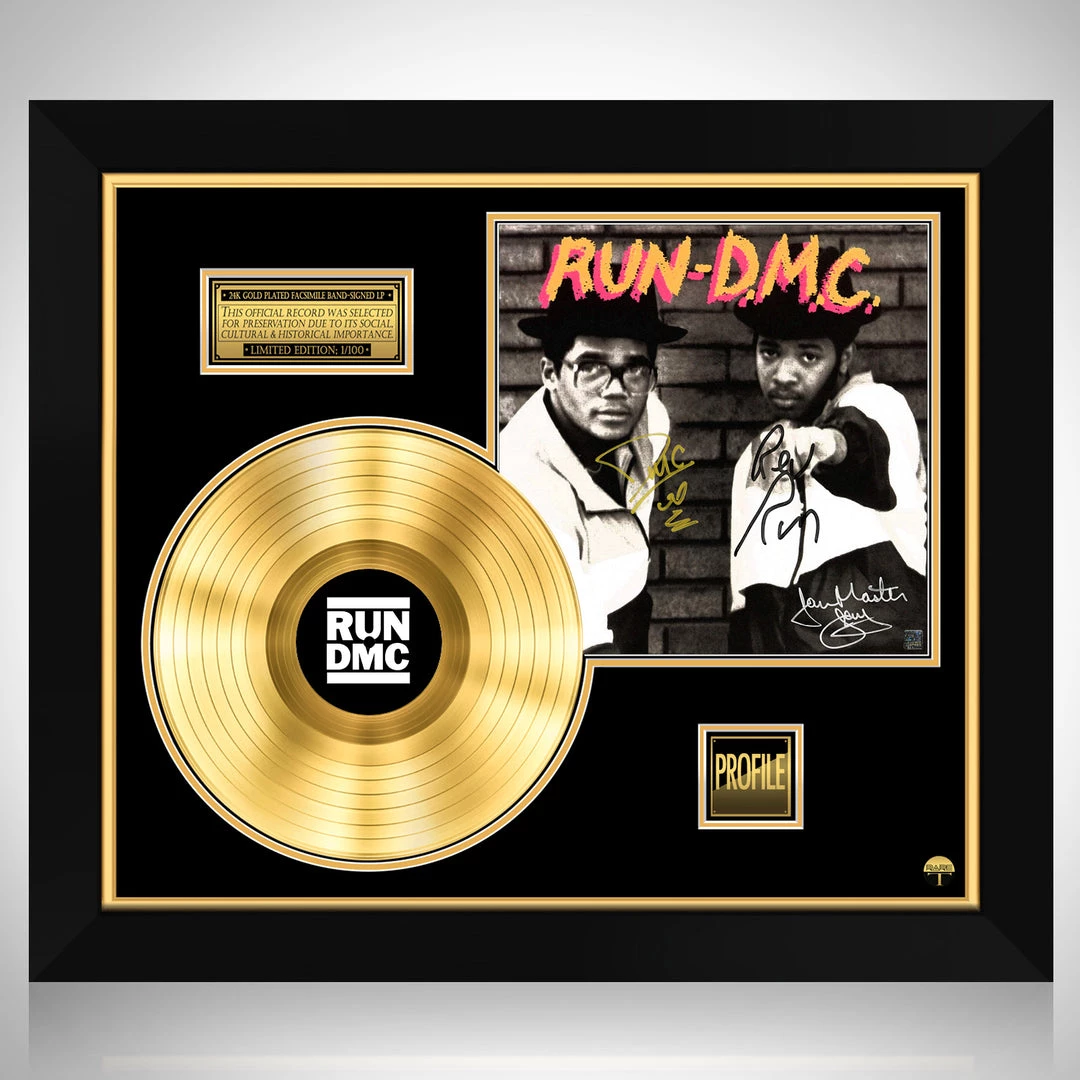 Pay homage to one of the most iconic rappers of all time Run DMC , with this gallery-framed, authentic Profile Records fully licensed facsimile of the official Hand-Signed 24K Gold LP Record and LP Cover Run DMC Originally signed by Rev Run, Jam Master Jay & Darryl McDaniels , of which is strictly limited to 100 units Worldwide and has been approved and numbered accordingly.