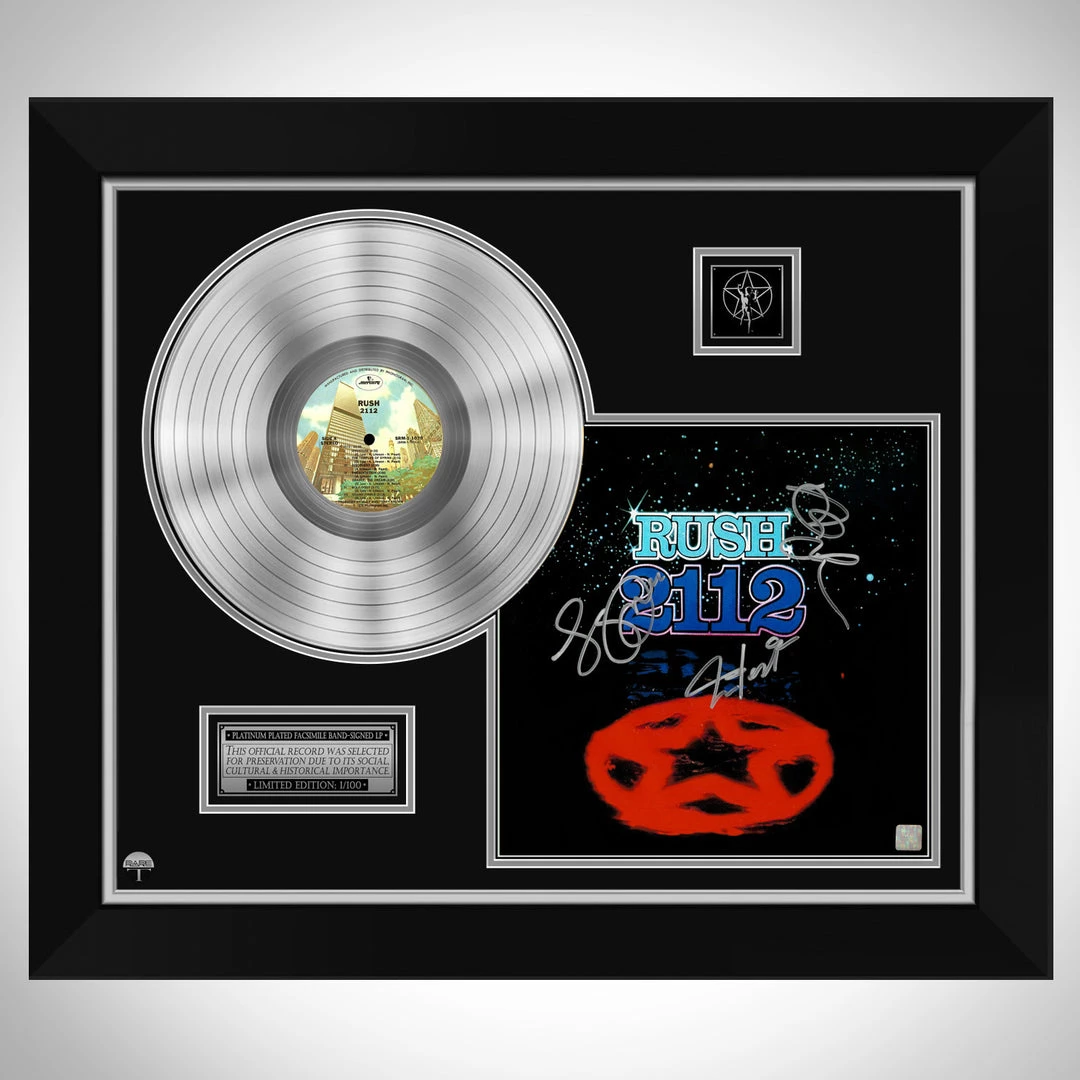 Æ’?? Collectible RUSH 2112 facsimile of hand-signed Platinum Plated LP Custom Frame