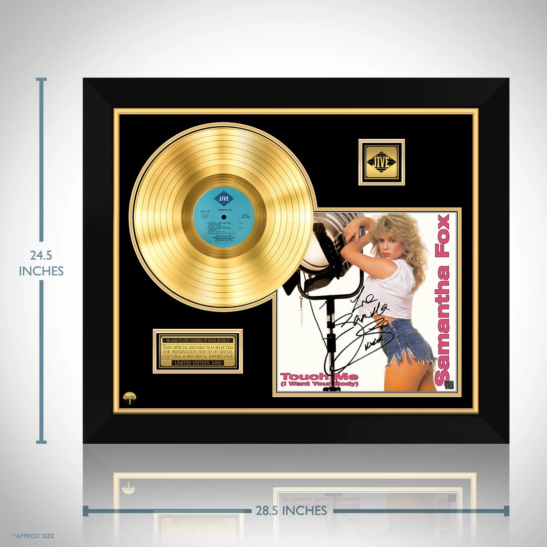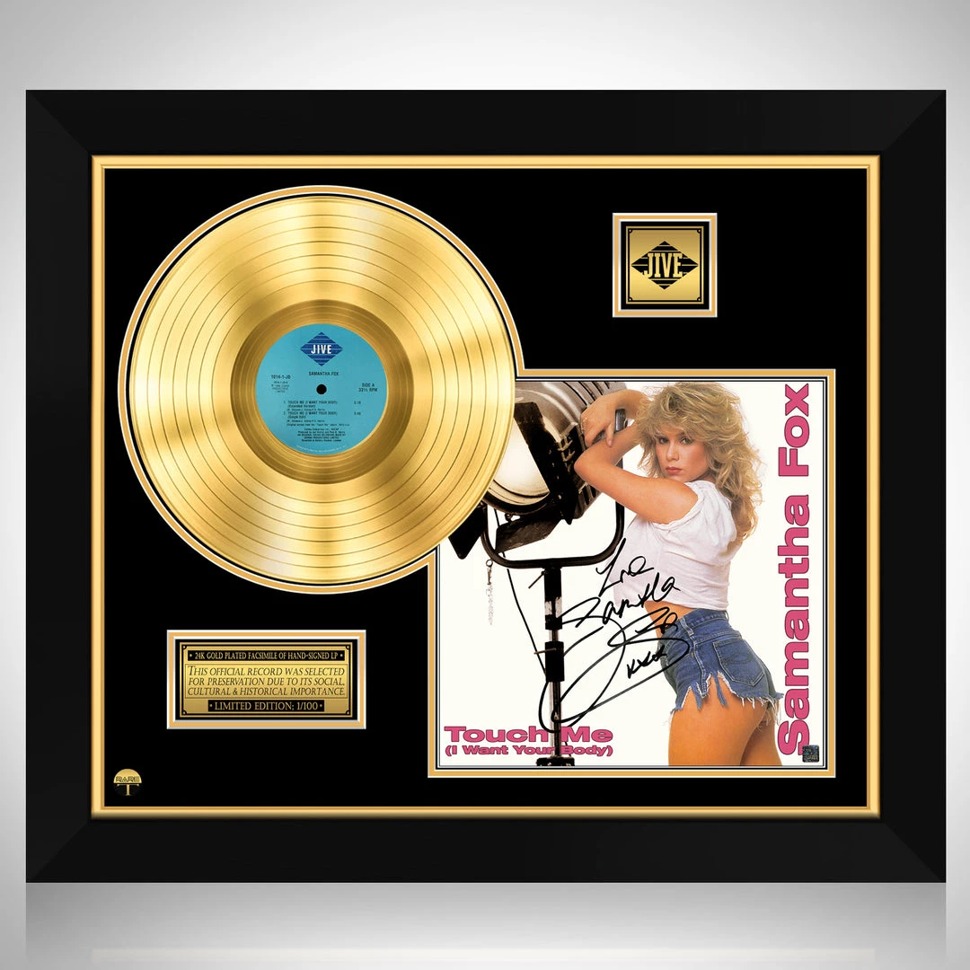 Pay homage to one of the most iconic British singer, songwriter, actress & model of all time Samantha Fox , with this gallery-framed, authentic Jive Record fully licensed facsimile of the official Hand-Signed 24K Gold LP Record and LP Cover Touch me Originally signed by Samantha Fox , of which is strictly limited to 100 units Worldwide and has been approved and numbered accordingly.