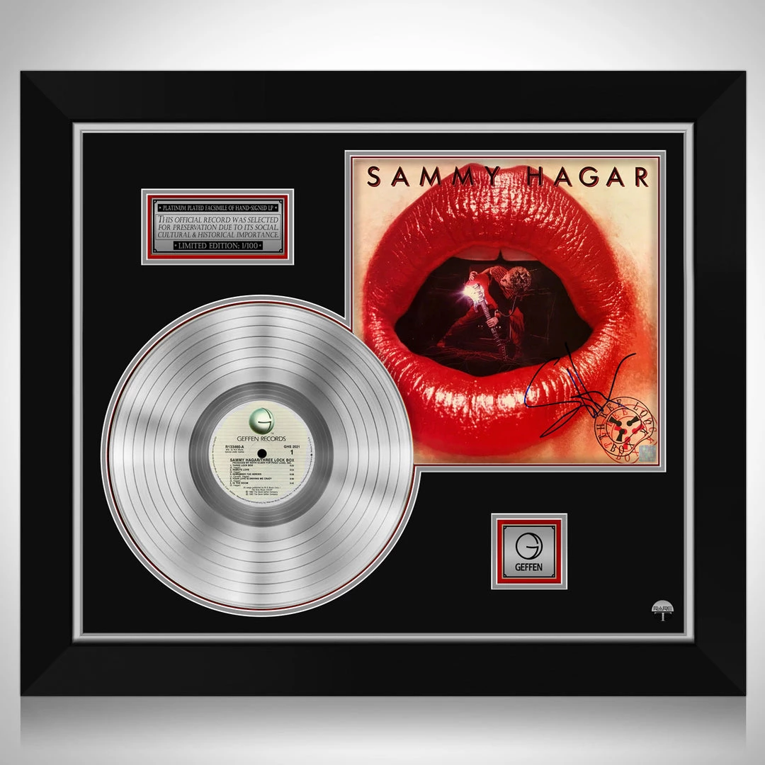 Pay homage to one of the best musical artists of all time, ‘The Red Rocket’ Sammy Hagar, with this gallery-framed, authentic, Geffen Records fully licensed facsimile of the official Hand-Signed Platinum Plated LP Record and LP Cover Three Lock Box originally signed by singer-songwriter, musician & entrepreneur Sammy Hagar, of which is strictly limited to 100 units Worldwide and has been approved and numbered accordingly.