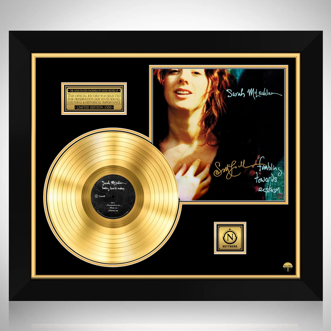 Pay homage to one of the most iconic Canadian singer-songwriter of all time Sarah McLachlan , with this gallery-framed, authentic Nettwerk Music Group fully licensed facsimile of the official Hand-Signed 24K Gold LP Record and LP Cover Fumbling towards ecstasy Originally signed by Sarah McLachlan , of which is strictly limited to 100 units Worldwide and has been approved and numbered accordingly.