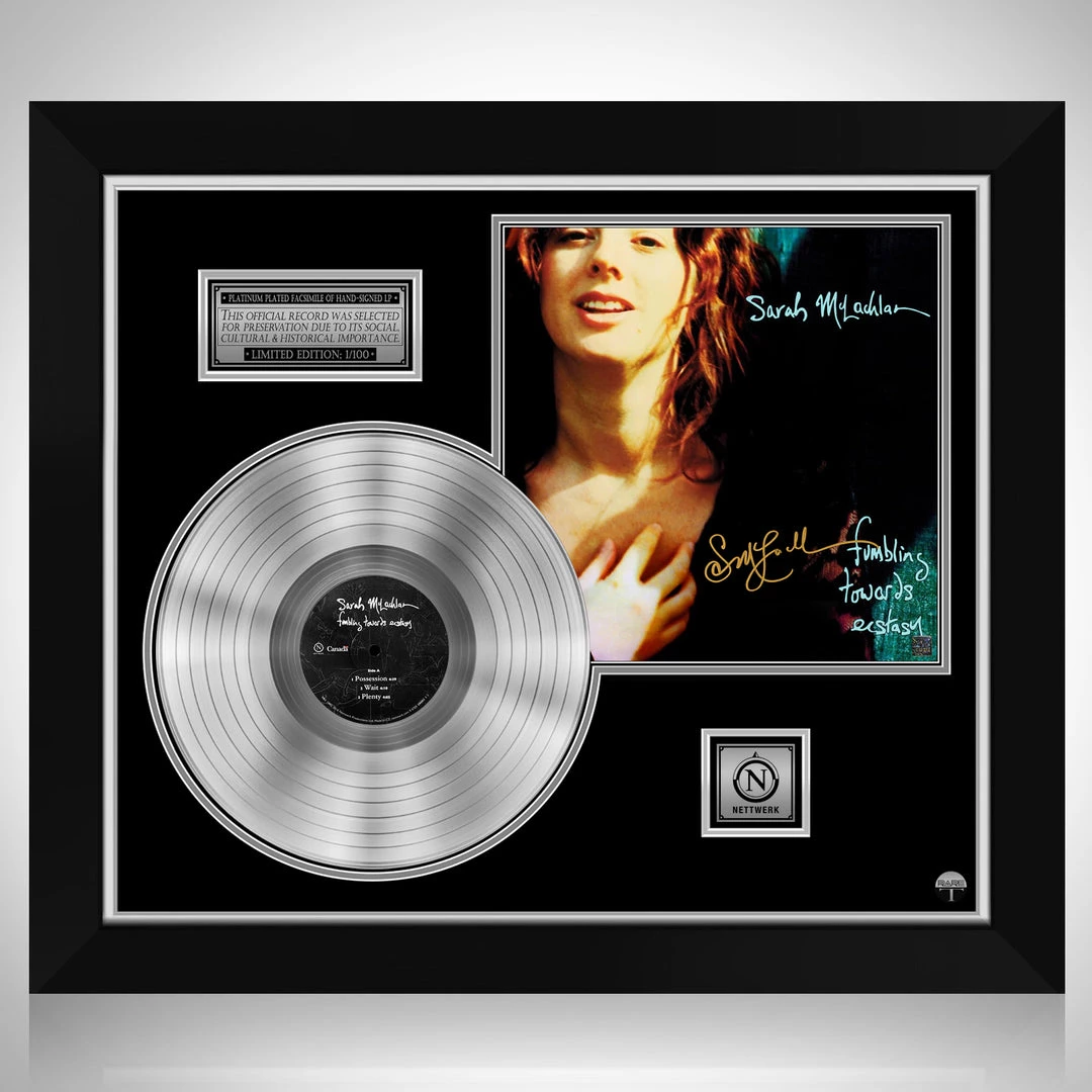 Pay homage to one of the most iconic Canadian singer-songwriter of all time Sarah McLachlan , with this gallery-framed, authentic Nettwerk Music Group fully licensed facsimile of the official Hand-Signed Platinum Plated LP Record and LP Cover Fumbling towards ecstasy Originally signed by Sarah McLachlan , of which is strictly limited to 100 units Worldwide and has been approved and numbered accordingly.