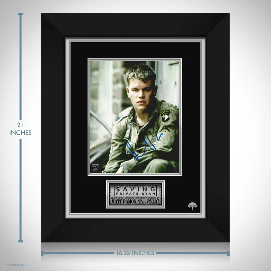 Pay homage to Saving Private Ryan, with this gallery-framed, officially licensed, limited edition facsimile of the Hand-Signed movie promo photo, originally signed by Matt Damon of which is strictly limited to 100 units Worldwide, and has been approved and numbered accordingly.