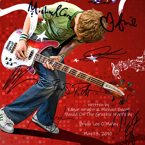 Pay homage to Scott Pilgrim vs The World , with this Universal Pictures fully licensed facsimile of the official signed movie script, originally signed by actors Michael Cera, Mary Elizabeth Winstead, Kieran Culkin, Chris Evans, Anna Kendrick, Alison Pill, Brandon Routh, Jason Schwartzman, Brie Larson, Bill Hader & Thomas Jane , of which is strictly limited to 100 units Worldwide and has been approved and numbered accordingly.