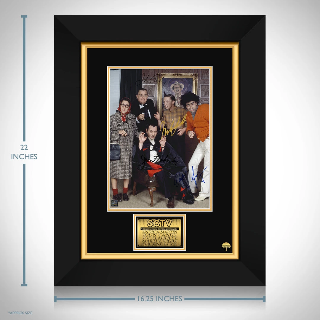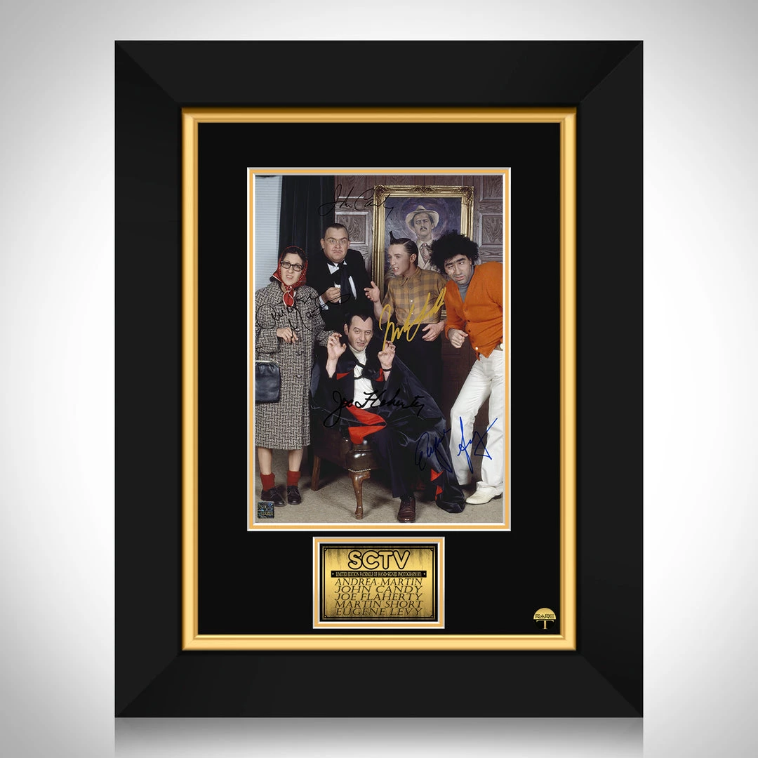 Pay homage to SCTVÂ , with this gallery-framed, officially licensed, limited edition facsimile of the Hand-Signed photo, originally signed by Andrea Martin, John Candy, Joe Flaherty, Martin Short and Eugene Levy, of which is strictly limited to 100 units Worldwide, and has been approved and numbered accordingly.