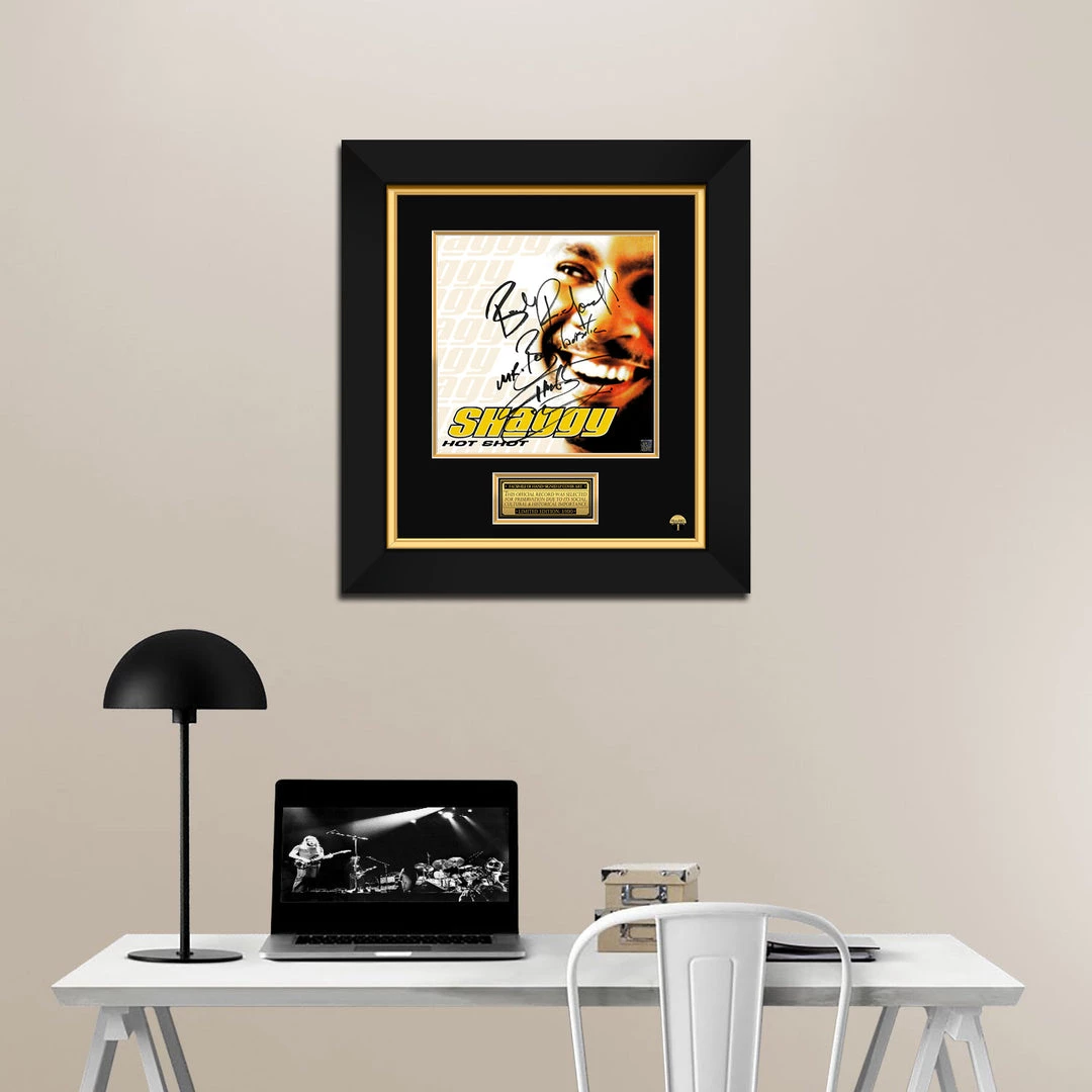 Pay homage to one of the most iconic Jamaican reggae musician Singer of all time, Shaggy , with this gallery-framed, officially licensed, limited edition facsimile of the Hand-Signed Hot Shot LP Cover originally signed by Shaggy , of which is strictly limited to 100 units Worldwide, and has been approved and numbered accordingly.