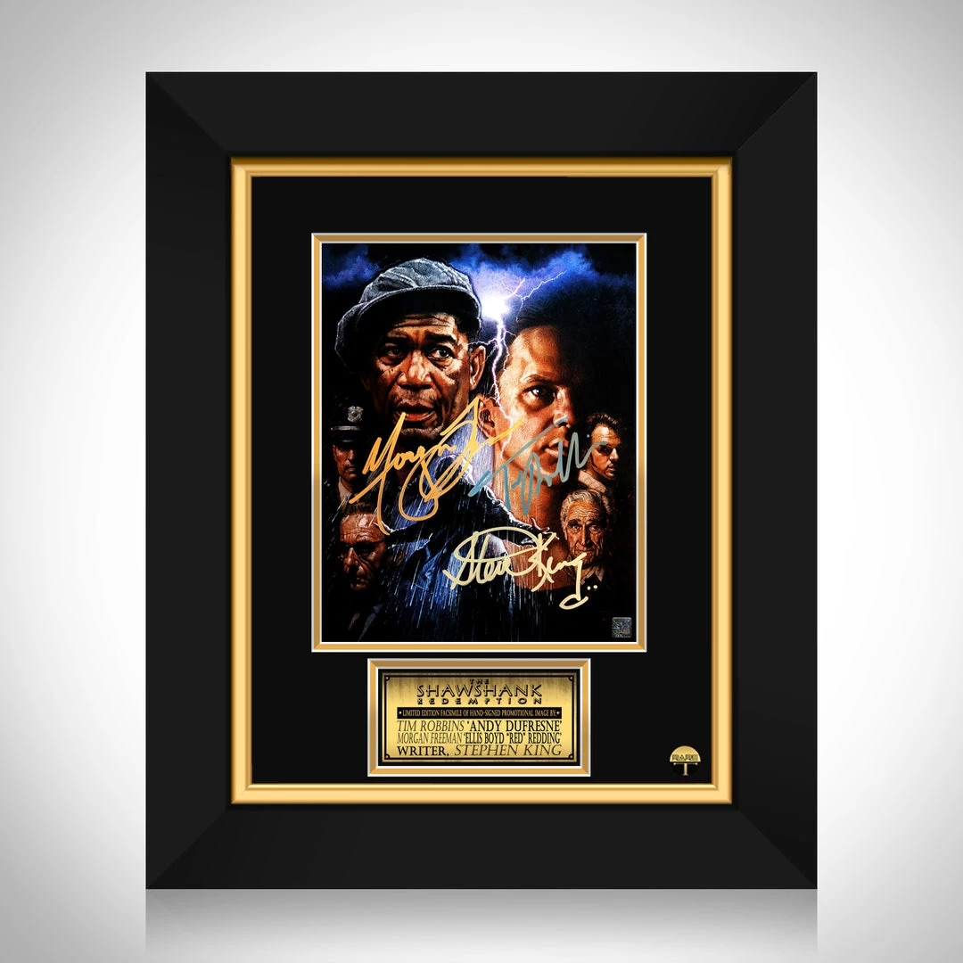 Pay homage to one of the most iconic movies of all time, Shawshank Redemption,, with this gallery-framed, officially licensed, limited edition facsimile of hand-signed movie photo, originally signed by legendary actors, Tim Robbins, Morgan Freeman and the highly acclaimed author, Stephen King, of which is strictly limited to 100 units Worldwide, and has been approved and numbered accordingly.