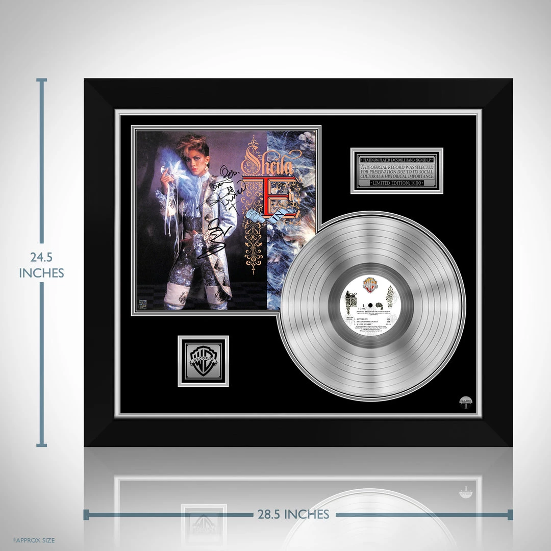 Pay homage to one of the most iconic American percussionist, singer of all time Sheila E. , with this gallery-framed, authentic Warner Bros. records fully licensed facsimile of the official Hand-Signed Platinum Plated LP Record and LP Cover Romance 1600Â Originally signed by Sheila E. & Prince , of which is strictly limited to 100 units Worldwide and has been approved and numbered accordingly.