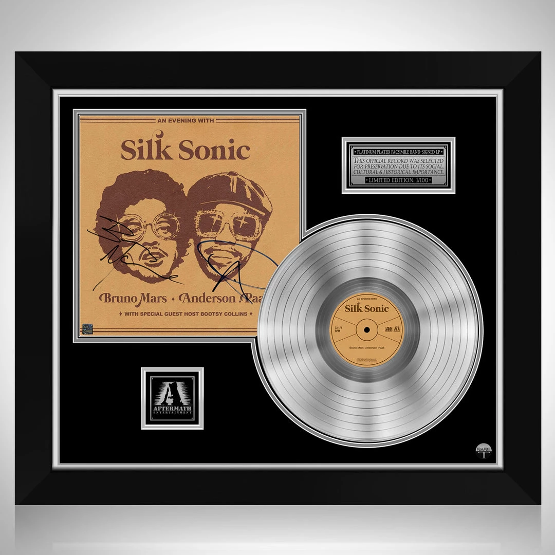 — Collectible Silk Sonic Facsimile Hand-Signed Platinum Plated LP Custom Frame