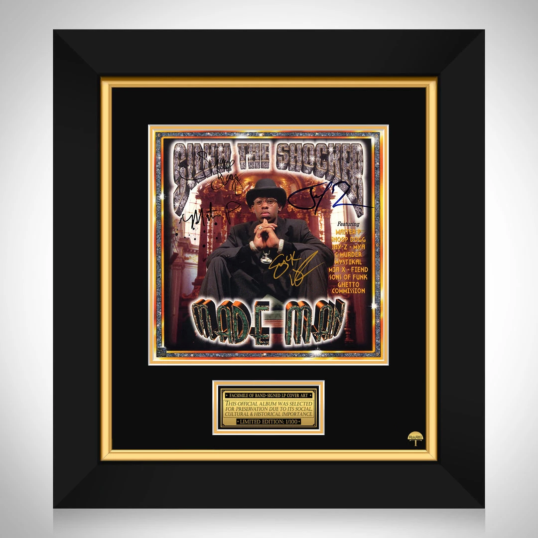 Pay homage to one of the most iconic American rapper of all time, Silkk The Shocker , with this gallery-framed, officially licensed, limited edition facsimile of the Hand-Signed Made Man LP Cover originally signed by Silk the shocker, Snoop Dogg, Jay-Z & Master P , of which is strictly limited to 100 units Worldwide, and has been approved and numbered accordingly.