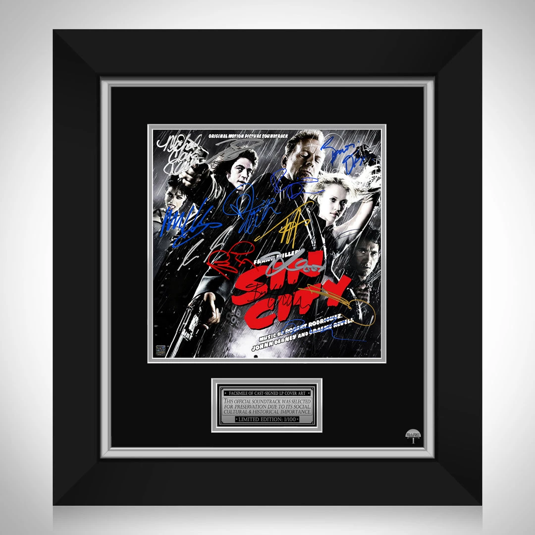 Pay homage to one of the most iconic movie of all time, Sin City , with this gallery-framed, officially licensed, limited edition facsimile of the Hand-Signed Original Motion Picture Soundtrack LP Cover originally signed by Quentin Tarantino, Jessica Alba, Rosario Dawson, Benicio Del Toro, Michael Clarke Duncan, Tommy Flanagan, Josh Hartnett, Michael Madsen, Clive Owen, Mickey Rourke, Nick Stahl, Bruce Willis, Elijah Wood, Robert Rodriguez & Frank Miller , of which is strictly limited to 100 units Worldwide, and has been approved and numbered accordingly.