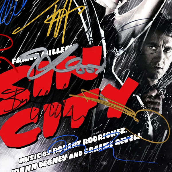 — Originally Signed by Quentin Tarantino, Jessica Alba, Rosario Dawson, Benicio Del Toro, Michael Clarke Duncan, Tommy Flanagan, Josh Hartnett, Michael Madsen, Clive Owen, Mickey Rourke, Nick Stahl, Bruce Willis, Elijah Wood, Robert Rodriguez & Frank Miller .