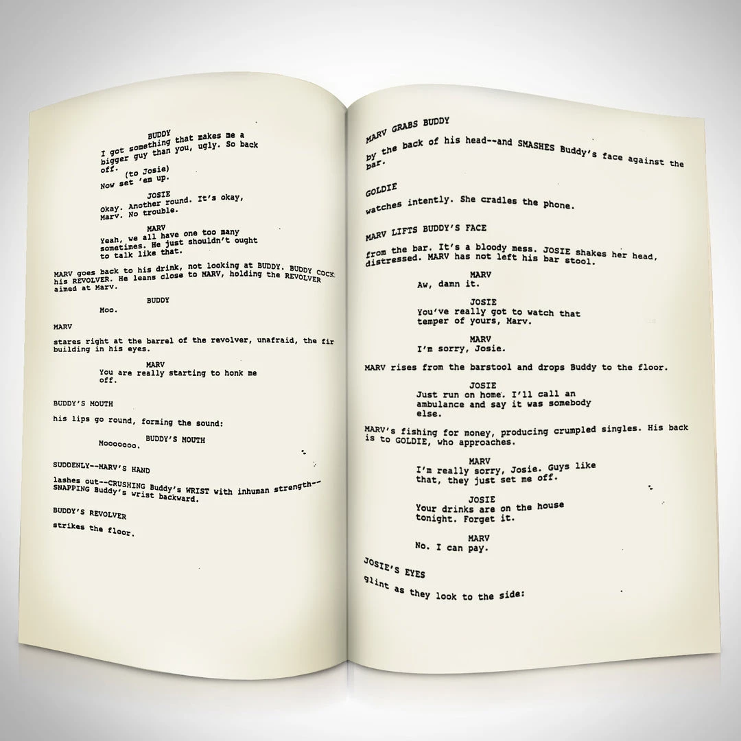 — Collector Grade Proprietary Exclusive VELVET TOUCH water/scratch resistant cover. — Collectible Facsimile of Original Hand-Signed Sin city movie Script Custom Frame.