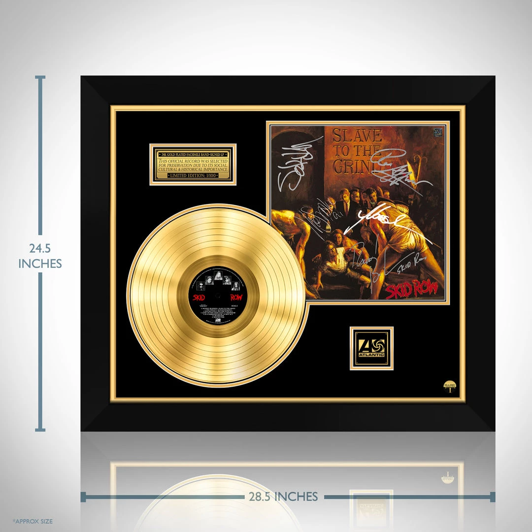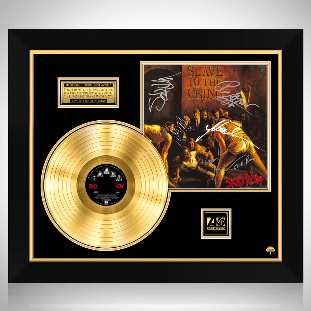 Pay homage to one of the most iconic American rock band of all time Skid Row , with this gallery-framed, authentic Atlantic records fully licensed facsimile of the official Hand-Signed 24K Gold LP Record and LP Cover Slave to the grind Originally signed by Sebastian Bach, Rachel Bolan, Scotti Hill, Dave Sabo & Rob Affuso , of which is strictly limited to 100 units Worldwide and has been approved and numbered accordingly.