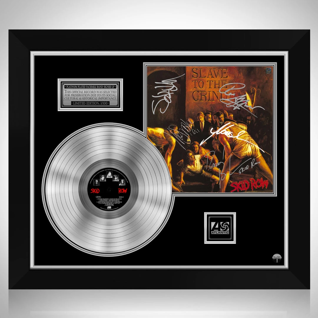 Pay homage to one of the most iconic American rock band of all time Skid Row , with this gallery-framed, authentic Atlantic records fully licensed facsimile of the official Hand-Signed Platinum Plated LP Record and LP Cover Slave to the grind Originally signed by Sebastian Bach, Rachel Bolan, Scotti Hill, Dave Sabo & Rob Affuso , of which is strictly limited to 100 units Worldwide and has been approved and numbered accordingly.