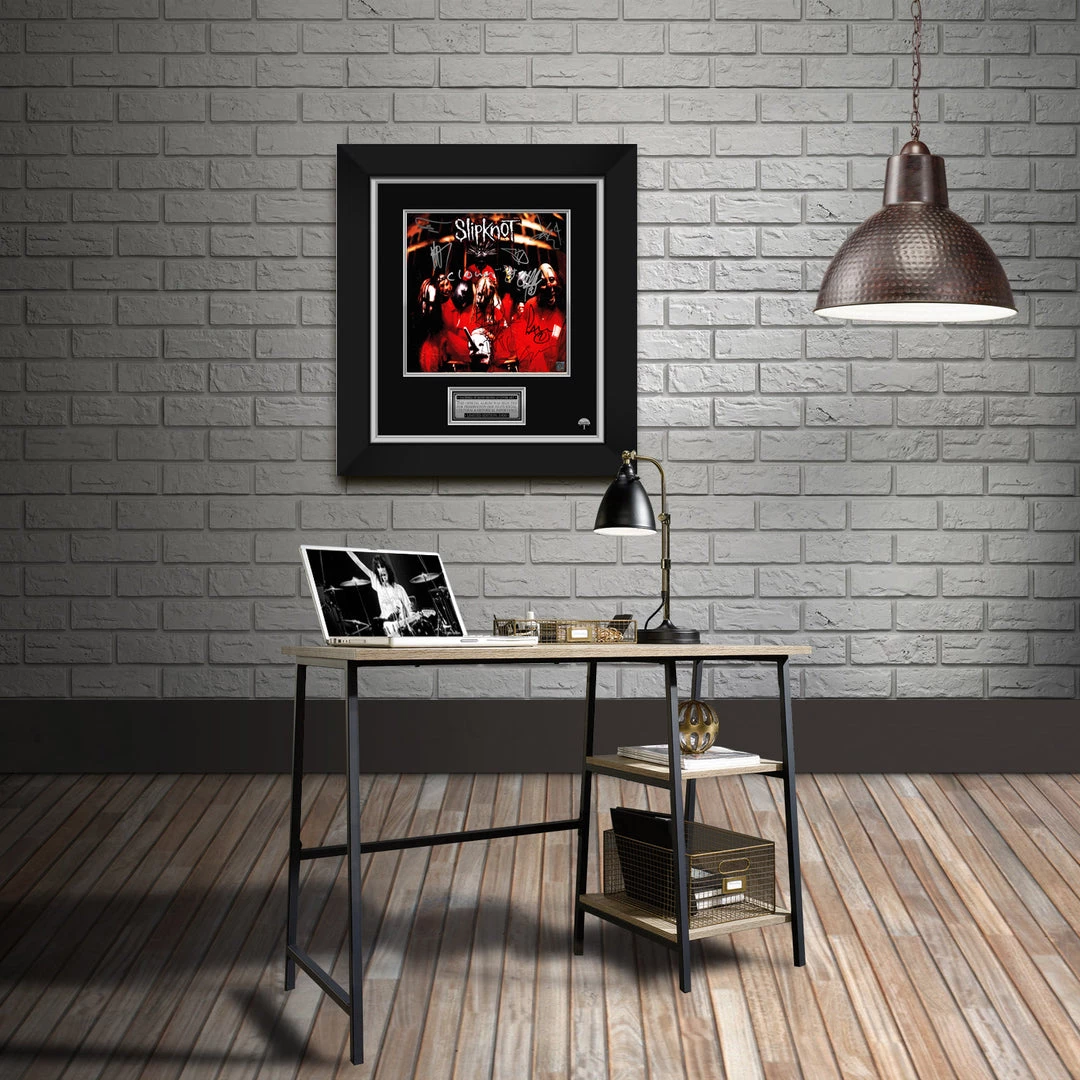 Pay homage to one of the most iconic Heavy Metal band of all time, Slipknot , with this gallery-framed, officially licensed, limited edition facsimile of the Hand-Signed Self titled LP Cover originally signed by Corey Taylor, Mick Thomson, Shawn Clown Crahan, Craig 133 Jones, Jim Root, Chris Fehn, Paul Gray, Joey Jordison & Sid Wilson , of which is strictly limited to 100 units Worldwide, and has been approved and numbered accordingly.