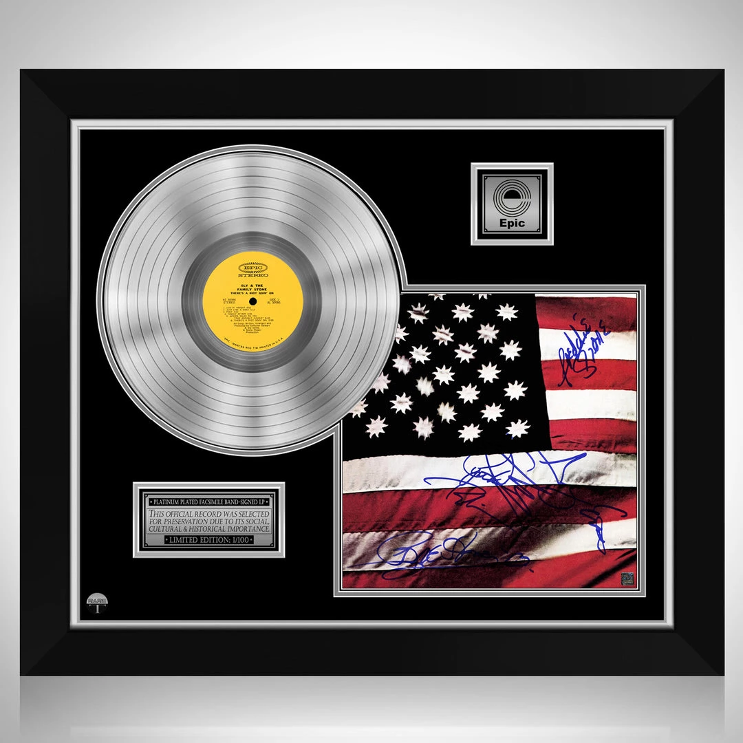 — Collectible Sly & The Family Stone Facsimile Hand-Signed Platinum Plated LP Custom Frame