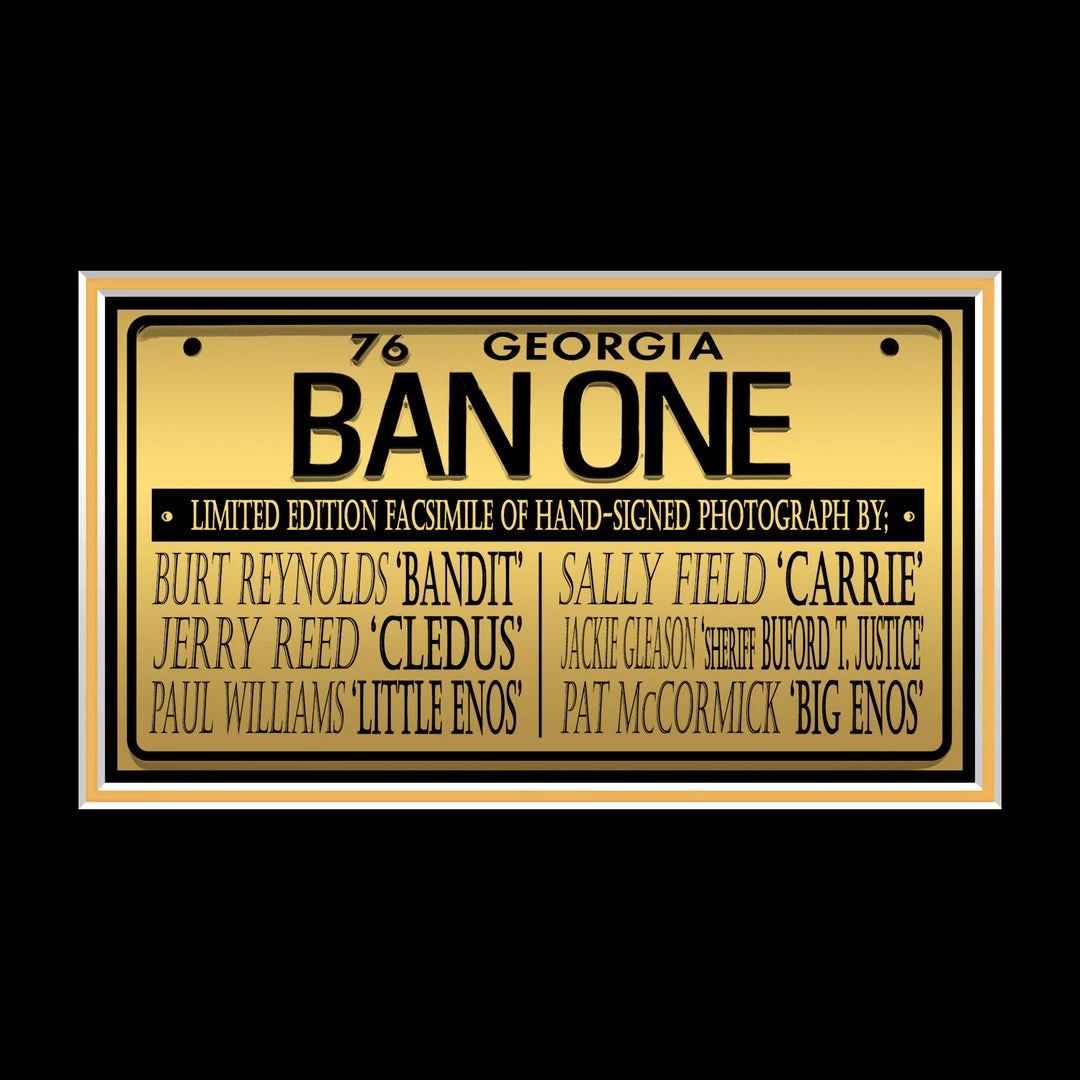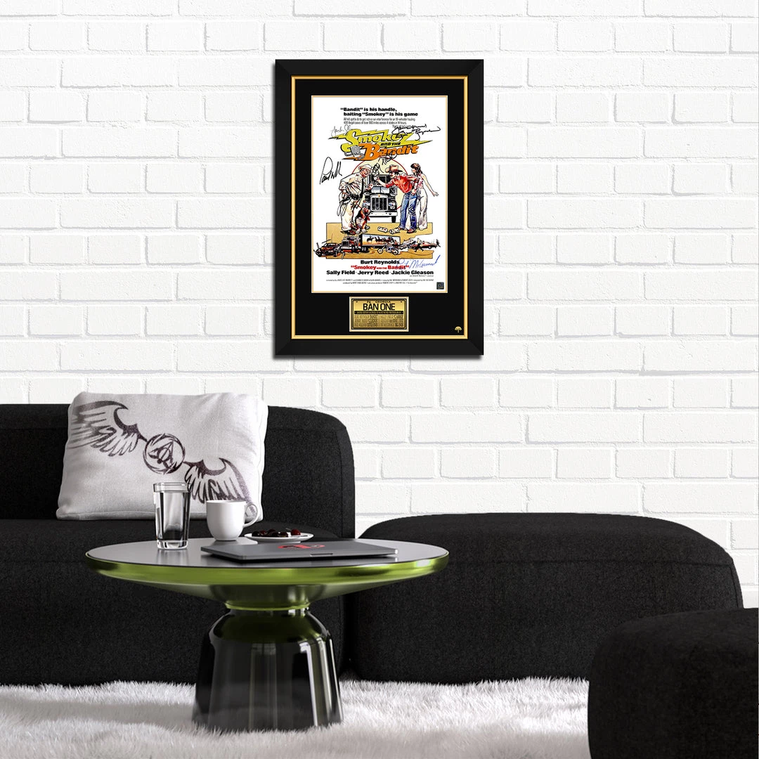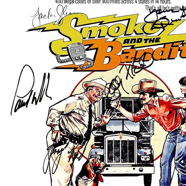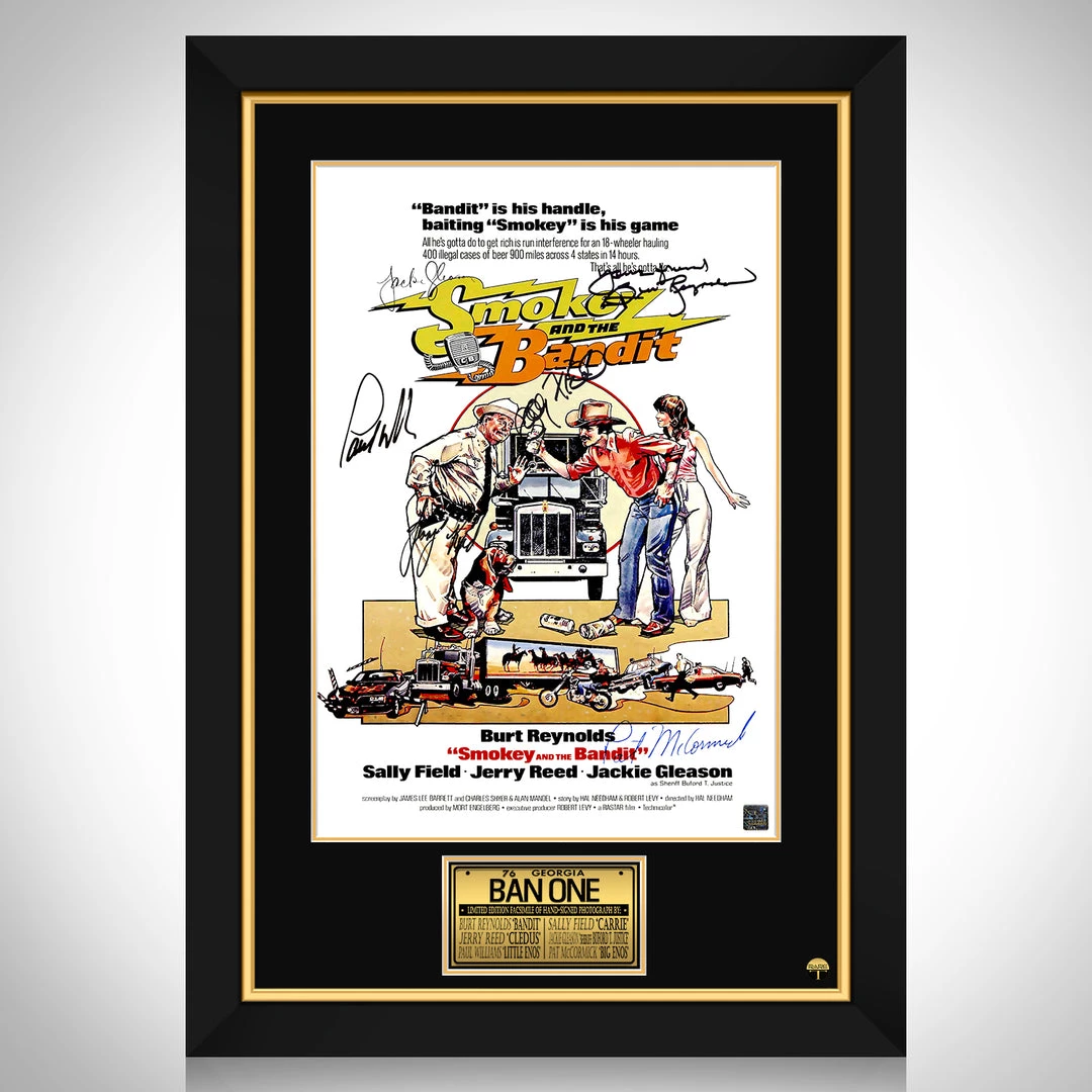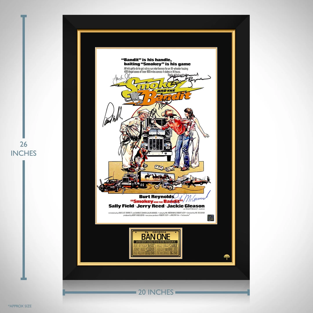 Pay homage to one of the most iconic films of all time, Smokey And The Bandit  , with this gallery-framed, officially licensed, limited edition facsimile of hand-signed movie mini poster, originally signed by Burt Reynolds, Jerry Reed, Paul Williams, Sally Field, Jackie Gleason & Pat McCormick, of which is strictly limited to 100 units Worldwide, and has been approved and numbered accordingly.