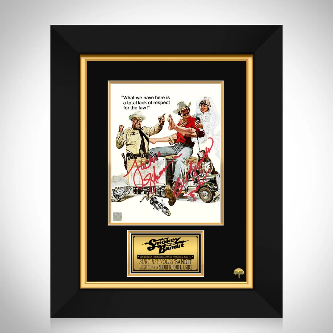 Pay homage to Bo “The Bandit” Darville, Sheriff Buford and one of the most iconic movies of all time, Smokey and the Bandit with this gallery-framed, officially licensed, limited edition facsimile of hand-signed movie promo photo, originally signed by two Hollywood legends, the late great Burt Reynolds & Jackie Gleason, of which is strictly limited to 100 units Worldwide, and has been approved and numbered accordingly.