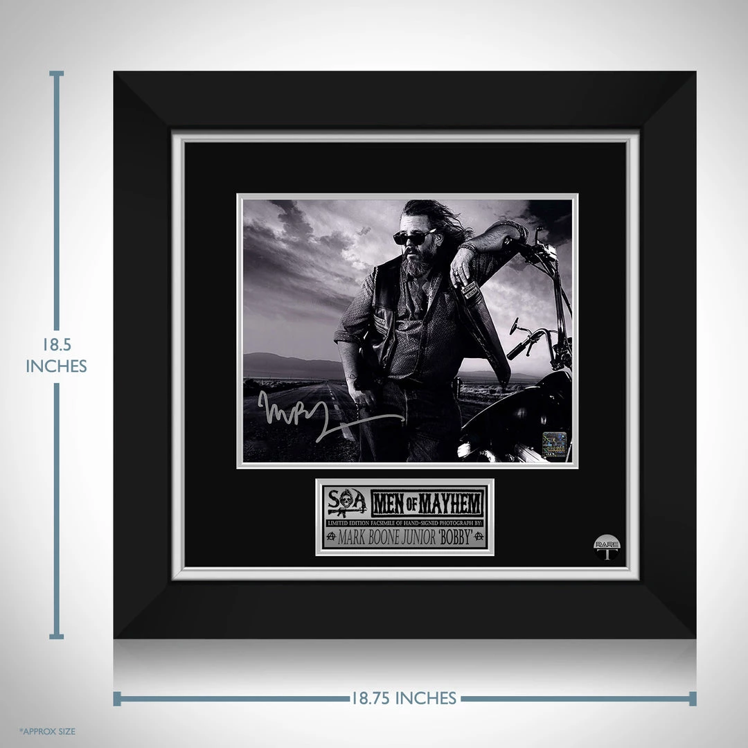 Pay homage to Sons Of Anarchy, with this gallery-framed, officially licensed, limited edition facsimile of the Hand-Signed photo, originally signed by Mark Boone Junior, of which is strictly limited to 100 units Worldwide, and has been approved and numbered accordingly.