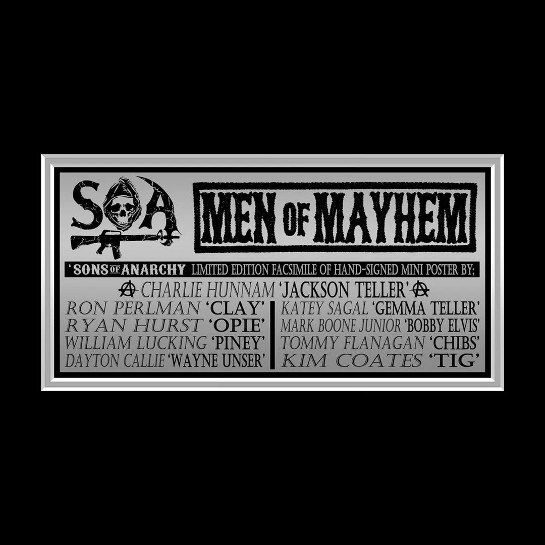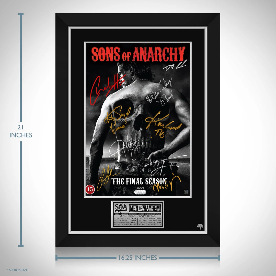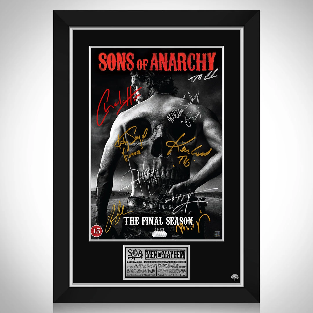 Pay homage to Sons Of Anarchy with this gallery-framed, officially licensed, limited edition facsimile of hand-signed mini poster, originally signed by  Charlie Hunnam, Ron Perlman, Ryan Hurst, William Lucking, Dayton Callie, Katey Sagal, Mark Boone Junior, Tommy Flanagan and Kim Coates., of which is strictly limited to 100 units Worldwide, and has been approved and numbered accordingly.