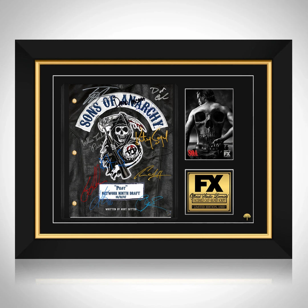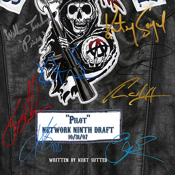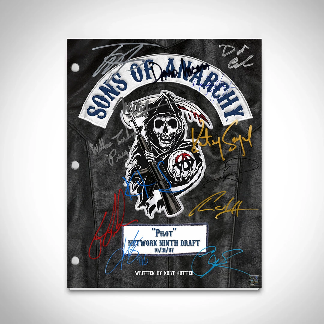 Pay homage to Sons of Anarchy , with this FX fully licensed facsimile of the official signed TV Series script, originally signed by actors Kurt Sutter, Charlie Hunnam, Katey Sagal, Mark Boone Junior, Kim Coates, Tommy Flanagan, Theo Rossi, Dayton Callie, Maggie Siff, Ron Perlman, David Labrava, Ryan Hurst, William Lucking & Emilio Rivera , of which is strictly limited to 100 units Worldwide and has been approved and numbered accordingly.