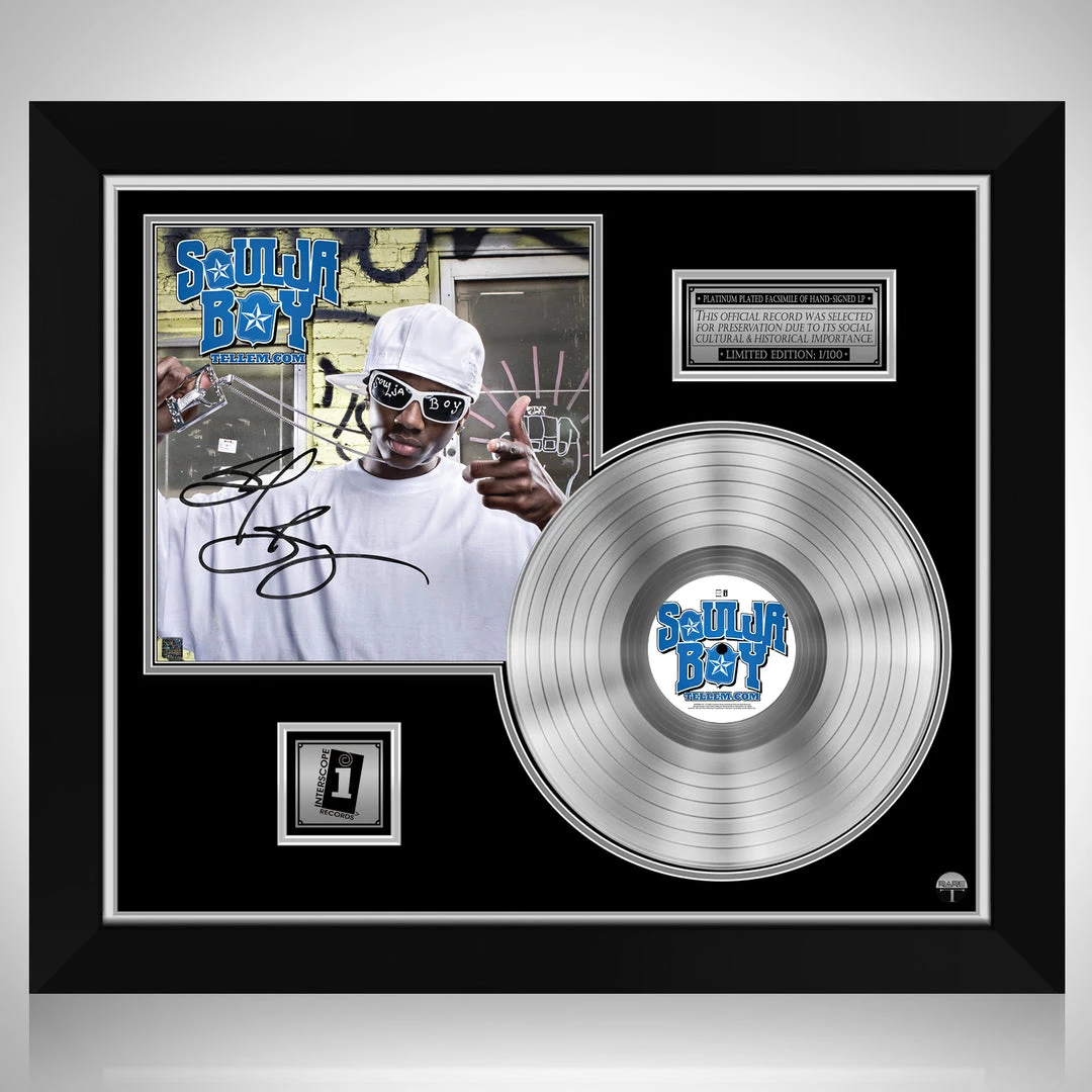 Pay homage to one of the most iconic American rapper, songwriter, record producer, actor, of all time Soulja Boy , with this gallery-framed, authentic Interscope Records fully licensed facsimile of the official Hand-Signed Platinum Plated LP Record and LP Cover souljaboytellem.com Originally signed by Soulja Boy , of which is strictly limited to 100 units Worldwide and has been approved and numbered accordingly.