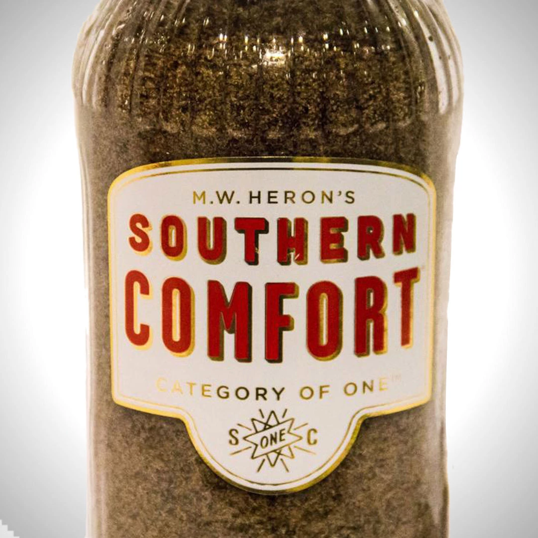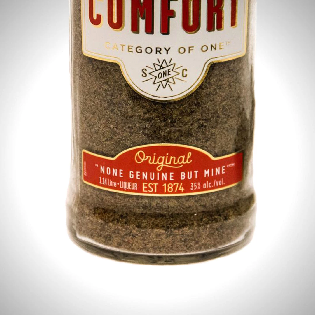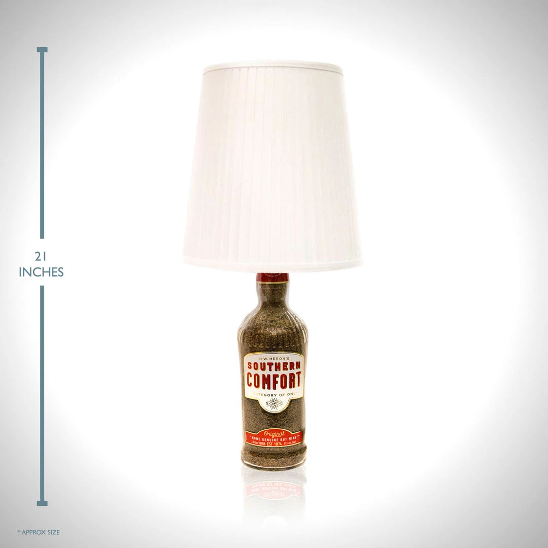 Folk Art, completely handcrafted ‘SOUTHERN COMFORT LIQUOR’ 750ml Vintage Label Custom Bottle Lamp, filled with sand reproducing liquor color, with matching lampshade. An original and unique addition to your classy, modern, vintage or rustic style interior.