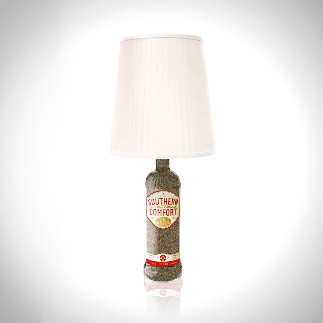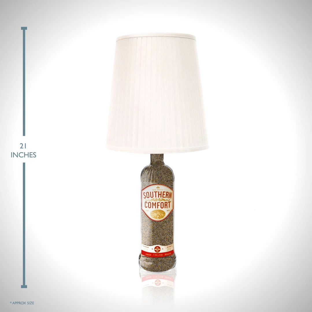 Folk Art, completely handcrafted ‘SOUTHERN COMFORT LIQUOR’ New Label 750 ml Custom Bottle Lamp, filled with sand reproducing liquor color, with matching lampshade. An original and unique addition to your classy, modern, vintage or rustic style interior.