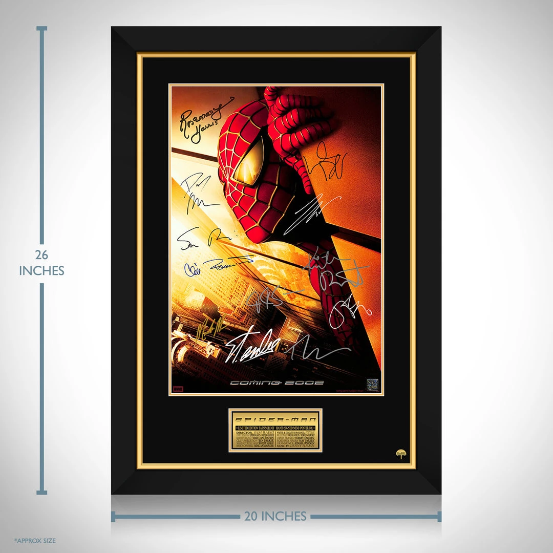 Pay homage to one of the most iconic films of all time, Spider-Man, with this gallery-framed, officially licensed, limited edition facsimile of hand-signed movie mini poster, originally signed by Sam Raimi, Tobey Maguire, Willem Dafoe, Kristen Dunst, James Franco, Cliff Robertson, Rosemary Harris, Danny Elfman, J.K. Simmons, Bruce Campbell, ‘Macho Man’ Randy Savage& Stan Lee, of which is strictly limited to 100 units Worldwide, and has been approved and numbered accordingly.