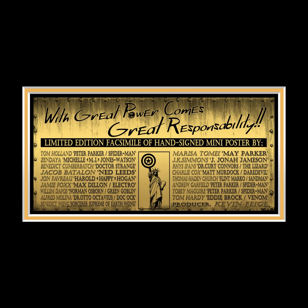 — Originally signed by Kevin Feige, Tom Holland, Zendaya, Benedict Cumberbatch, Jacob Batalon, Jon Favreau, Jamie Foxx, Willem Dafoe, Alfred Molina, Benedict Wong, Marisa Tomei, J.K.Simmons, Rhys Ifans, Charlie Cox, Thomas Haden Church, Andrew Garfield, Tobey Maguire, Tom Hardy