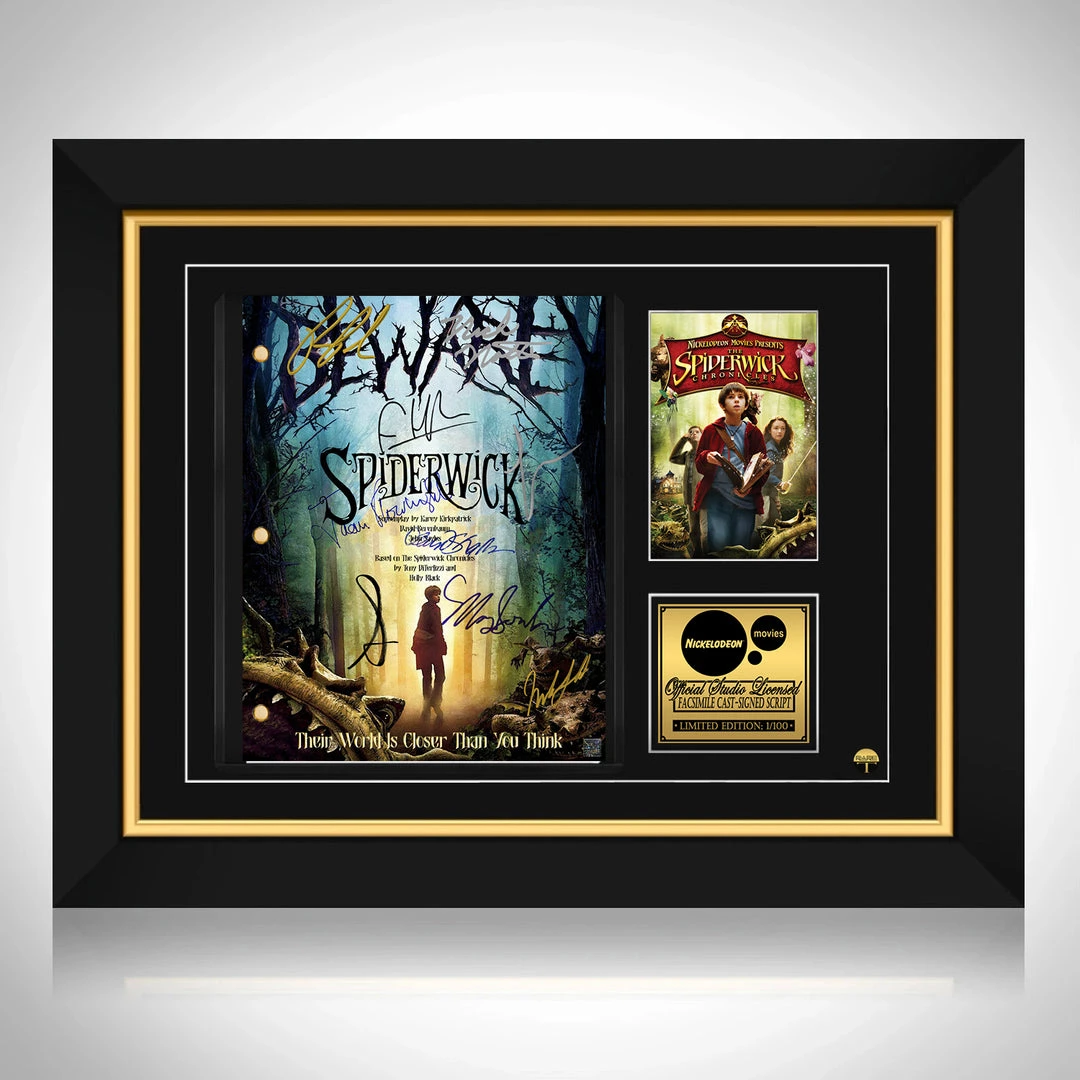 Pay homage to Spiderwick Chronicles , with this Paramount Pictures fully licensed facsimile of the official signed movie Transcript , originally signed by actors Freddie Highmore, Sarah Bolger, Mary-Louise Parker, Martin Short, Nick Nolte, Seth Rogen, Joan Plowright, David Strathairn & Ron Perlman , of which is strictly limited to 100 units Worldwide and has been approved and numbered accordingly.