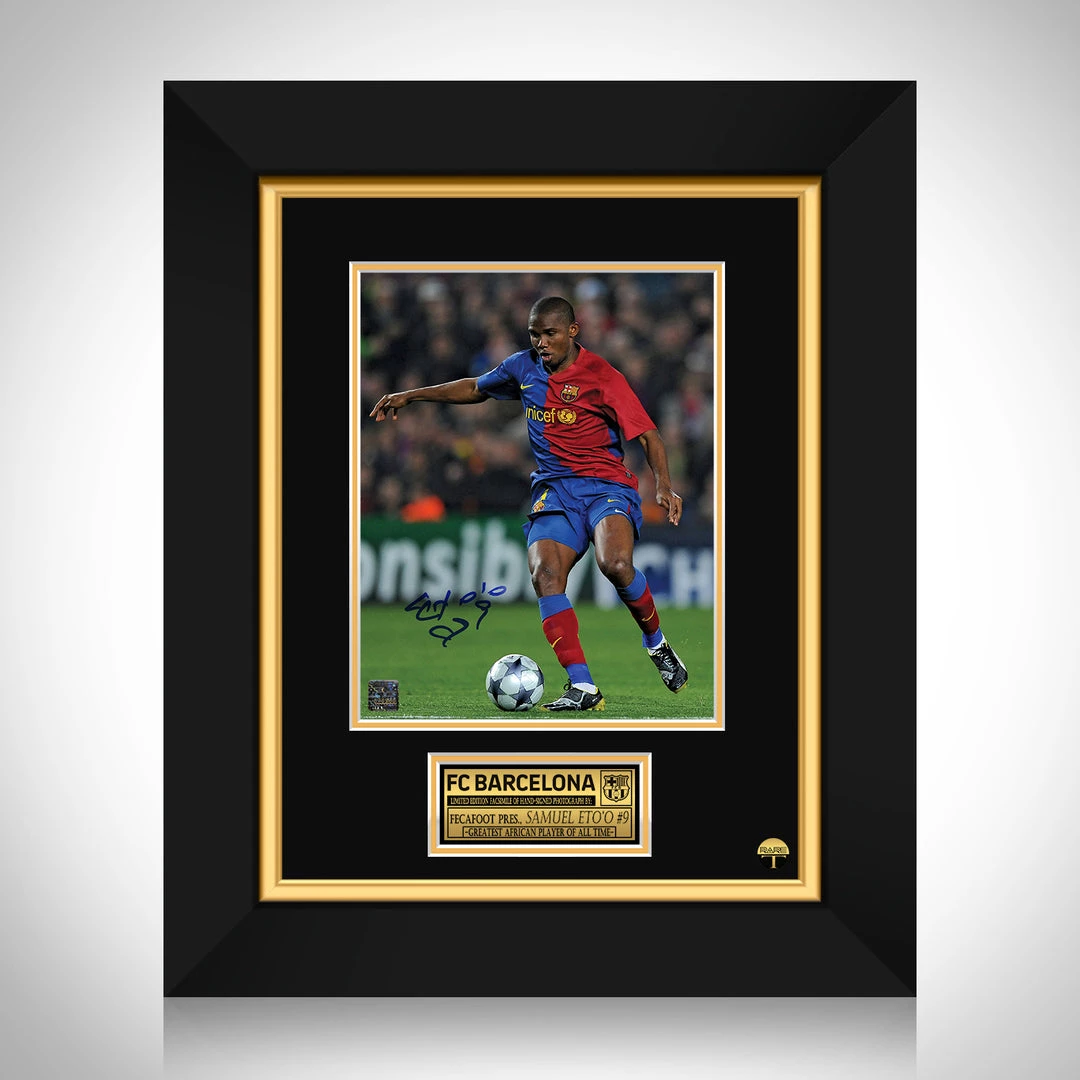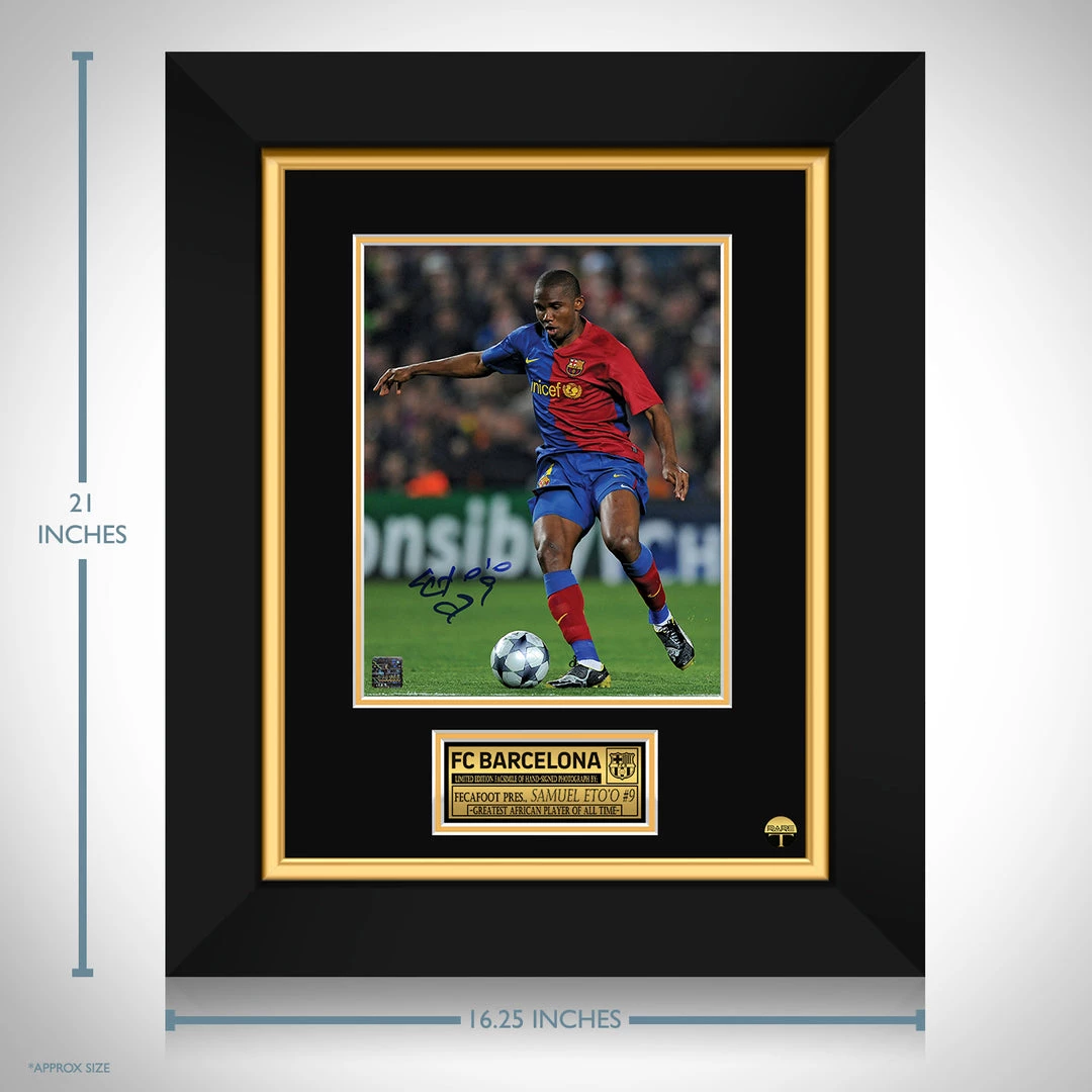 Pay homage to Barcelona FC with this gallery-framed, officially licensed, limited edition facsimile of hand-signed photo, originally signed by Samuel Eto’o , of which is strictly limited to 100 units Worldwide, and has been approved and numbered accordingly.