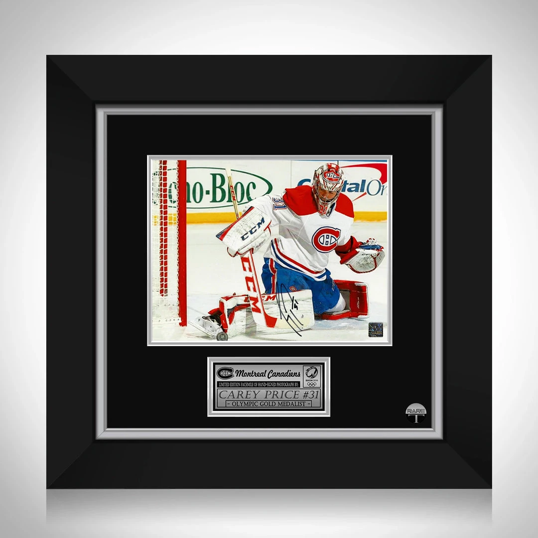 Pay homage to one of the best goaltenders in the world, Carey Price & the Montreal Canadiens, with this gallery-framed, officially licensed, limited edition facsimile of hand-signed photo, originally signed by Carey Price himself, of which is strictly limited to 100 units Worldwide, and has been approved and numbered accordingly.