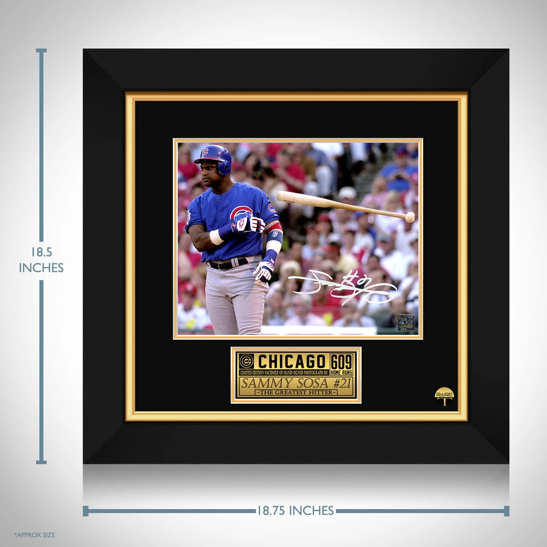 Pay homage to one of the most iconic Baseball player of all time, Chicago Cubs, with this gallery-framed, officially licensed, limited edition facsimile of hand-signed photo, originally signed by Sammy Sosa, of which is strictly limited to 100 units Worldwide, and has been approved and numbered accordingly.