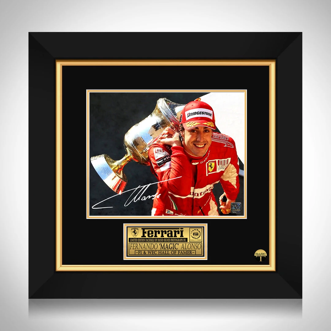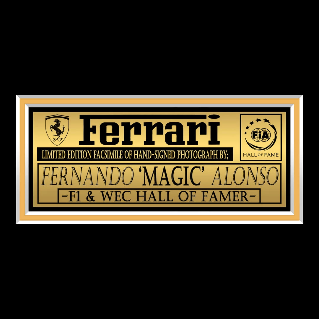 Pay homage to Fernando Alonso with this gallery-framed, officially licensed, limited edition facsimile of the Hand-Signed photo, originally signed by Fernando Alonso, of which is strictly limited to 100 units Worldwide, and has been approved and numbered accordingly.
