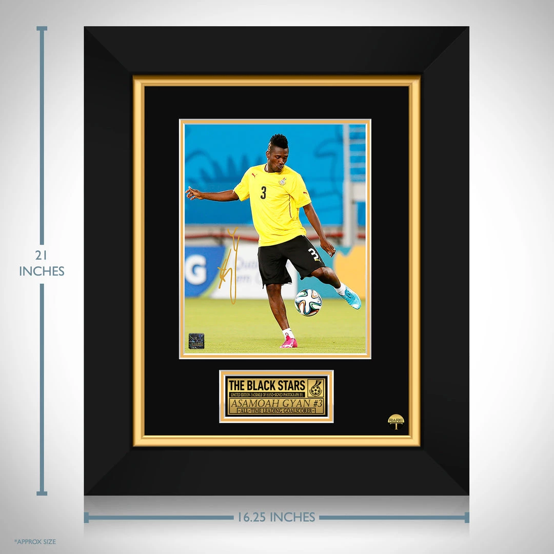 Pay homage to one of the greatest soccer players in the history of the sport, one of the most famous athletes of all time, Asamoah Gyan, with this gallery-framed, officially licensed, limited edition facsimile of the Hand-Signed of photo of Asamoah Gyan, of which is strictly limited to 100 units Worldwide, and has been approved and numbered accordingly.