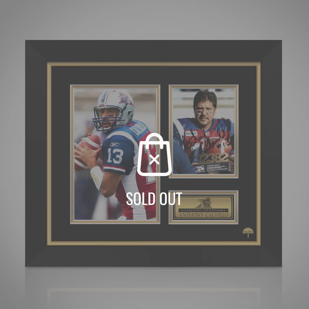 Pay homage to one of the greatest CFL players in history and one of the greatest quarterbacks of all time, #13 Anthony Calvillo from the Montreal Alouettes with this gallery-framed, Hand-Signed photo of the legendary quarterback, signed by Anthony Calvillo himself.