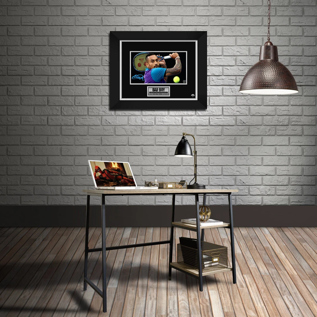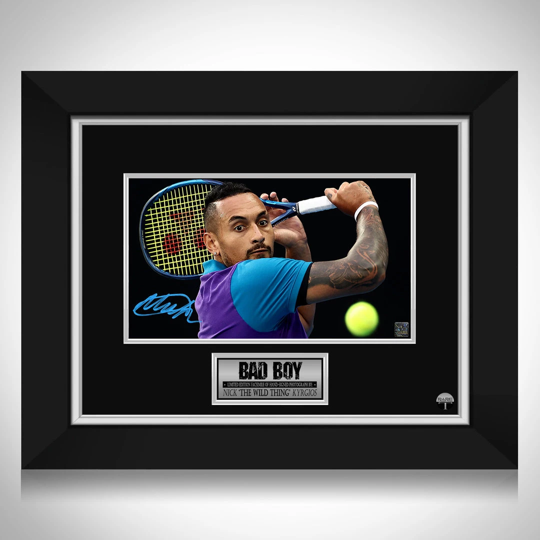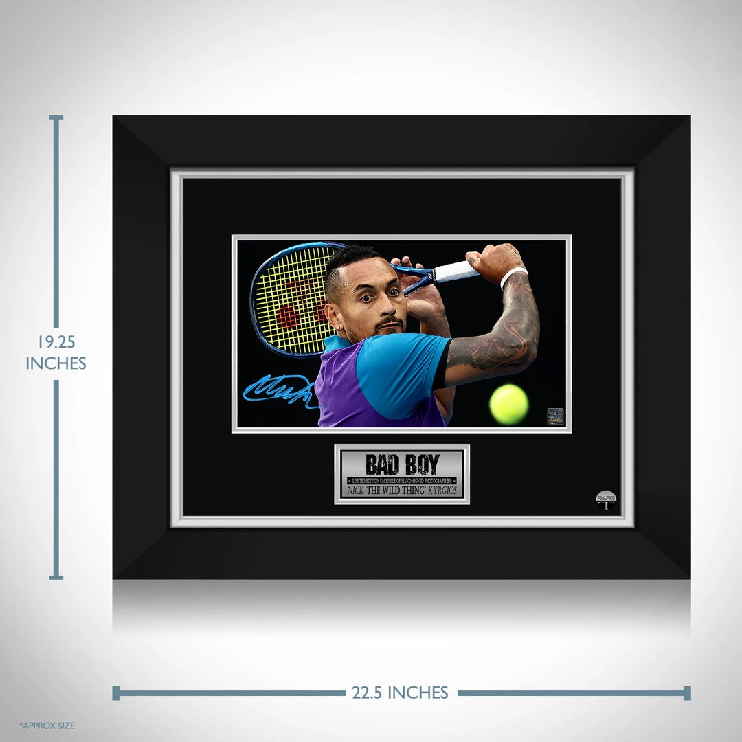 — Collectible Nick Kyrgios facsimile photo of original Hand-Signed photo custom frame.