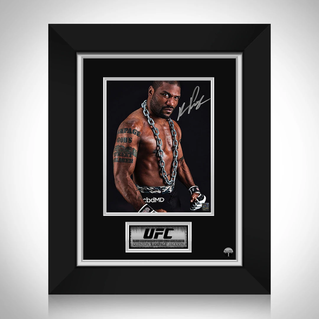 Pay homage to Quinton ‘Rampage’ Jackson with this gallery-framed, officially licensed, limited edition facsimile of hand-signed photo, originally signed by Quinton Jackson , of which is strictly limited to 100 units Worldwide, and has been approved and numbered accordingly.